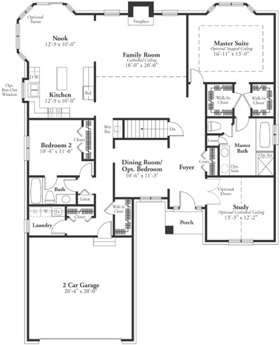 A brick facade, covered entrance, and large window topped with transom add style and substance to this single-story home. The gracious interior has a warm fireplace, large kitchen, and bedrooms separated for privacy and quiet
